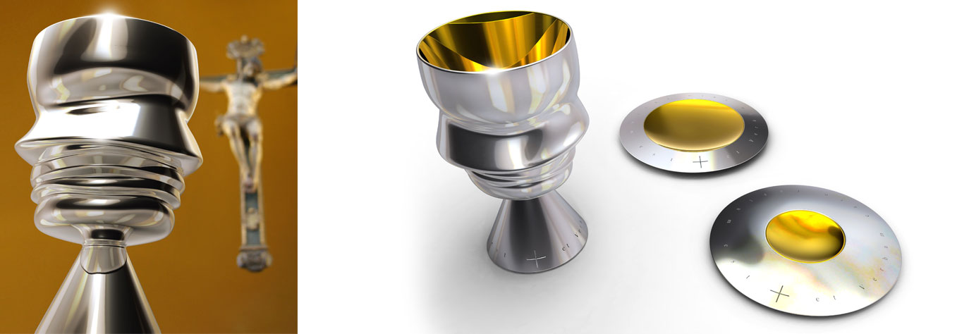 La forma del calice deriva dalla sagoma di un profilo umano che muta mentre ruota attorno al centro della coppa. Ruotando il calice si scorgono infiniti profili diversi che simboleggiano l'umanità intera incarnata nel calice | Concorso Deisign 2010